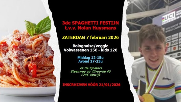 Het is weer zover ! Nolan nodigt jullie van harte uit voor zijn 3de spaghettifestijn op zaterdag 7 FEBRUARI 2026