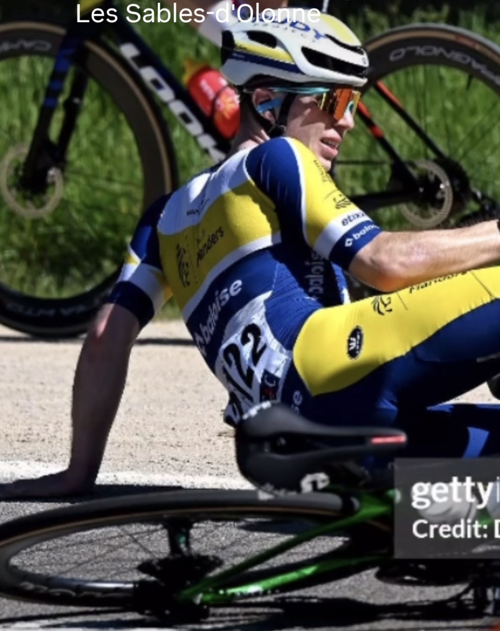 Alles verliep spoedig maar in de slotfase van de wedstrijd was er een valpartij waar ook Nolan bij betrokken was. Gelukkig viel de schade wel mee en kon hij via talloze bochten en door de smalle straten toch nog finishen.